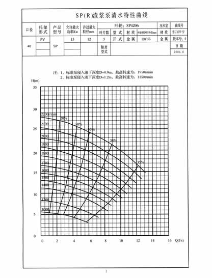 40PV-SP液下渣漿泵性能曲線: